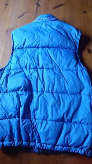 Chaleco acolchado de la marca Spagnolo en color azul. - Cierre de cremallera frontal. - Bolsillos con cremallera en la parte delantera. - Detalle de etiqueta en el pecho y el cuello Está nuevo.