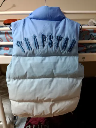 Chaleco acolchado con un diseño degradado de azul a blanco. Presenta el logo de la marca bordado en la parte superior. - Logo de Trapstar bordado. - Diseño degradado.