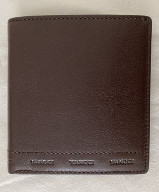 Cartera billetero para hombre. Marca: YANCCI, modelo Greca (tipo americano). Piel de Ubrique (vacuno). Color marrón oscuro. Cuenta con compartimentos para documentos, para tarjetas y para billetes. NUEVA, sin estrenar. Entrega en mano o envío a través de Wallapop