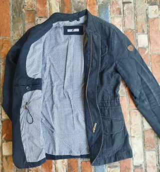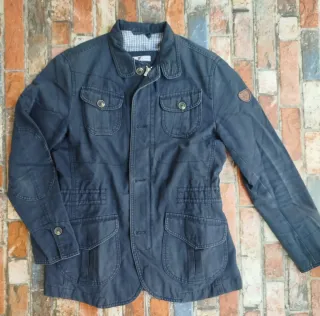 Chaqueta formal de algodón para hombre. Tiene bolsillos. -Diseño moderno, a la par que funcional y clásico. - Color azul. - Talla M pero algo pequeña, más bien es una S. Más ropa en mi perfil. Hago packs y descuentos.