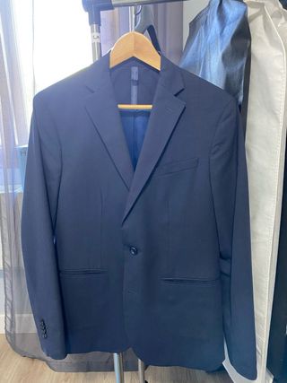 Conjunto de americana y pantalón de Massimo Dutti. - Americana de corte clásico. - Pantalón a juego. - Etiqueta interior de la marca visible.