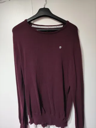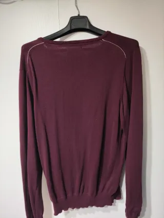 Chaleco de punto fino en color morado. - Diseño de manga larga. - Cuello redondo. - Detalle de logo en el pecho. - Bajo con acabado festoneado.