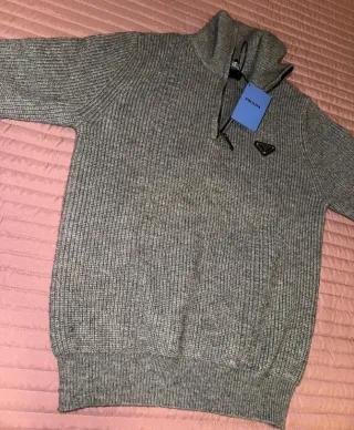 Chaleco de punto grueso con cremallera frontal y cuello alto. Presenta el icónico logo triangular de Prada. - Tejido de punto acanalado. - Cremallera completa en la parte delantera. - Detalle de logo triangular metálico.