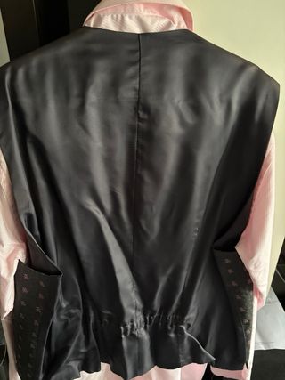 Elegante chaleco de ceremonia con un diseño bordado.Fabricación italiana comprado en tienda de novios, no se pudo llegar a estrenar - Color gris con detalles bordados en rosa. - Talla XL (46/56). La foto esta con una camisa para que se vea bien, si te interesa hablame