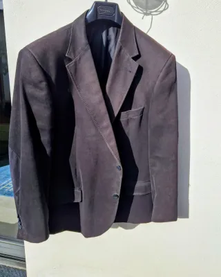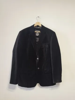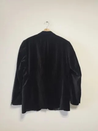 Vendo americana de terciopelo de hombre. Color negro, muy elegante, tanto para vestir como para llevar casual con vaqueros o chinos. Talla 56. Yo llevo 54 pero ésta no da mucha talla. Solo estrenada, usada solo en una ceremonia, como a estrenar. Comprada en El Corte Inglés.
