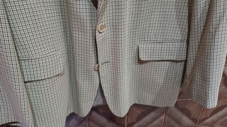 Americana de cuadros, tiene bolsillos exteriores y dos interiores. Con botones en la zona delantera y en los puños.