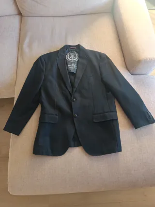👔 ¡Completa tu look elegante con esta americana de traje! Vendo chaqueta negra de la marca PuroEgo. Un básico que te sacará de cualquier apuro, ideal para eventos, oficina o salir. ✨ 📏 Corte: Slim Fit. Queda muy entallada, estilizando la figura y dándole un toque moderno y elegante. (¡Recuerda añadir tu talla exacta!). ⚠️ ESTADO: La chaqueta está en buenas condiciones, pero tiene algunas manchas superficiales y polvo de estar guardada (ver fotos). Con un cepillo para ropa o limpieza en seco se quitan fácilmente y queda como nueva. 🧼 ¡Precio súper rebajado por este detalle! Escríbeme y cerramos trato. 🚀