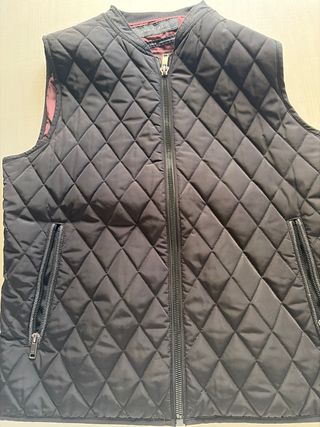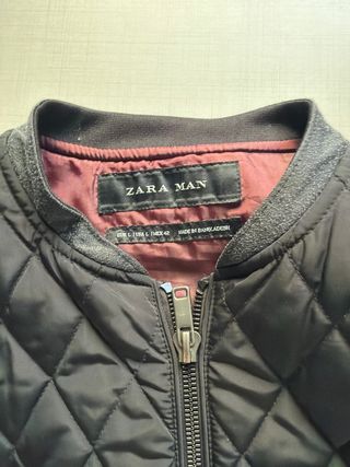 Chaleco acolchado de la marca Zara para hombre. Presenta un diseño con rombos y cierre de cremallera. - Bolsillos laterales con cremallera. - Cuello redondo.