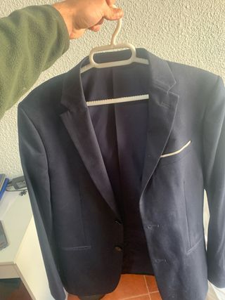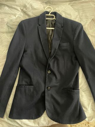 Americana impecable, color azul marino, un solo uso, corte estilizado y tejido de microestructura. Ideal para eventos o trabajo. Precio en tienda 169 €.