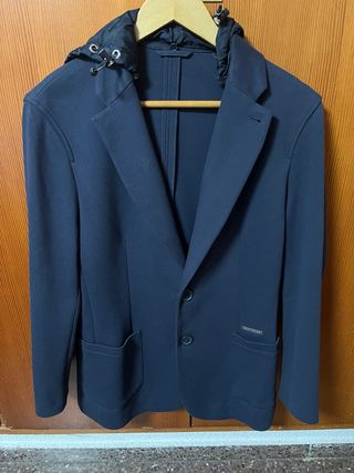 Americana deportiva de Armani Exchange en color azul. Presenta un diseño moderno con capucha integrada. - Cierre de dos botones. - Bolsillos frontales. - Detalle de logo en bolsillo.