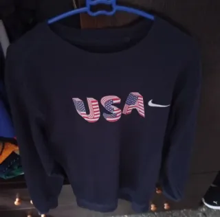 jerseis de manga larga con diseño USA y el icónico swoosh de Nike, talla M, estoy cerca de la entrada principal del hospital Dr Peset, Av Gaspar Aguilar 90 Valencia - Estampado USA con diseño de bandera americana. - Logo de Nike. - Cuello redondo.