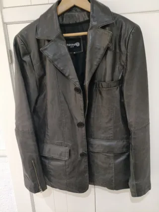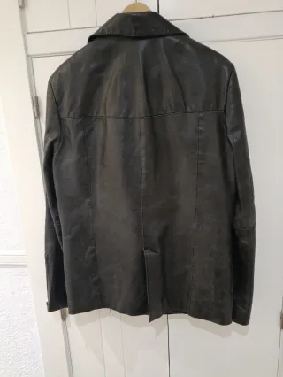 Americana de cuero para hombre negra. Un clásico que nunca pasa de moda. Medidas : 46 cm hombro y 71 largo - Cierre de botones. - Bolsillos frontales. - Detalle de cremallera en el puño.