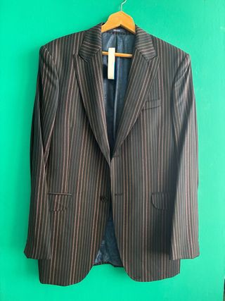 Americana de vestir para hombre con un diseño clásico de rayas verticales. El forro interior es de color marrón. - Diseño de rayas verticales. - Forro interior de color marrón. - Cierre de un botón.