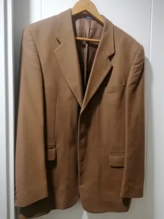 Americana de caballero en color camel. - Corte clásico. - Dos botones frontales. - Bolsillos de solapa.