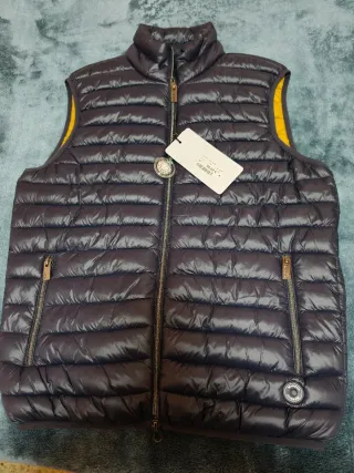 Chaleco acolchado para hombre, ideal para estrenar. Chaleco,precioso repito totalmente original 💯 por 💯 , acolchado ligero pero abrigado ,muy bonito la combinación de color amarillo y azul 💙 muchas gracias espero que os guste y hagáis un regalo a esos padre que yo por desgracia no tengo para el día del padre oferta 🉐 - Diseño moderno y ligero. - Cierre de cremallera frontal. - Bolsillos laterales con cremallera. - Cuello alto para mayor protección.