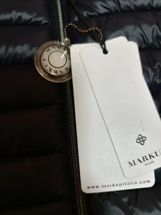 Chaleco acolchado de la marca MARKUP, ideal para añadir una capa extra de abrigo. Es una prenda nueva, sin estrenar. Aquí os dejo un precioso chaleco de la marca prestigiosa MARKUP , acolchado no pesa pero abrigan mucho naranja por dentro muy bonito gracias original 💯 por 💯 totalmente original se puede comprobar no hace falta mucho solo verlo las etiquetas las marcas el bordado el precio sin más muchas gracias - Diseño sin mangas. - Cierre frontal con cremallera. - Bolsillos laterales con cremallera. - Forro interior de color naranja vivo.