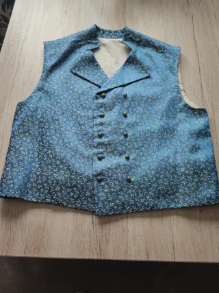 Elegante traje de tres piezas para hombre. Perfecto para eventos formales o de negocios. - Chaqueta con solapa de muesca. - Chaleco a juego. - Pantalones rectos. - Corresponde a una 42 de hombre de Indtex (Zara, etc.) aunque laegiqueta pone 50 (es el tallaje de la tienda). - El chico mide 1.80 - De Comercio local de trajes