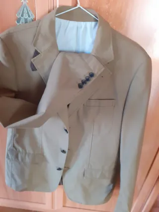 Traje de chaqueta pantalón y americana. Marca Easy Wear de El Corte Inglés. Comprado en 2025, utilizado una vez y llevado a la limpieza. Es ideal para chicos altos y delgaditos Chaqueta talla 46. Pantalón talla 40. Slim fit. Modelo actual que siguen vendiendo. Sienta genial. Largo pantalón 103 cm. Largo chaqueta 75 cm. Ancho hombros chaqueta 45 cm. En Corte Inglés el pantalón vale 49,99€ y la chaqueta 119€