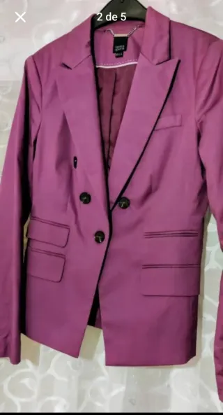 Americana de mujer en color morado. Un clásico que no puede faltar en tu armario. En perfecto estado - Doble abotonadura. - Bolsillos frontales. - Puños con botones.