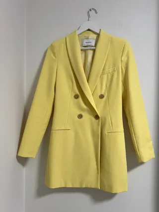 Americana de Stradivarius en color amarillo. - Diseño de doble botonadura. - Solapa ancha. - Bolsillos frontales con solapa.