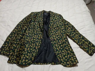 Elegante y diferente americana estilo Frac de terciopelo usada en muy contadas ocasiones. Dado lo difícil de encontrar este tipo, apenas la he usado. Queda espectacular y tiene un rollo muy chulo para tus looks. Desafortunadamente demasiado estrecha ya para mi 😢. Pone talla 42 pero es una 40 e incluso 38. Las medidas están en las imágenes.