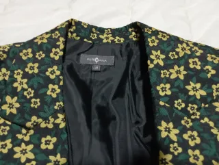 Americana de la marca Surkana con un estampado floral. - Diseño con flores amarillas y detalles verdes. - Cierre de botón. - Forro interior negro.