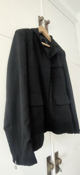 Americana de la marca Colcci de diseño moderno en color negro. Talla M/L (medidas: 45cm hombros, 50cm sisa y 73cm largo), 100% poliéster, 3 bolsillos delanteros, forro interior fino, cierre con cremallera frontal y detalle de cremallera en los puños, letras Boxing Club en parte superior espalda. Poco usada y en perfectas condiciones.
