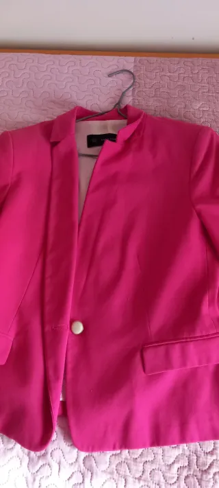 Americana de la marca Zara en color rosa. - Diseño de blazer. - Un botón delantero. - Bolsillo de solapa. Talla más pequeña, como una M