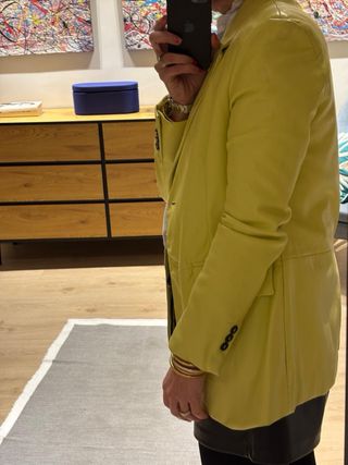 Americana de Bershka con un diseño moderno. - Material: Piel sintética. - Color: Amarillo. - Corte: Oversize.