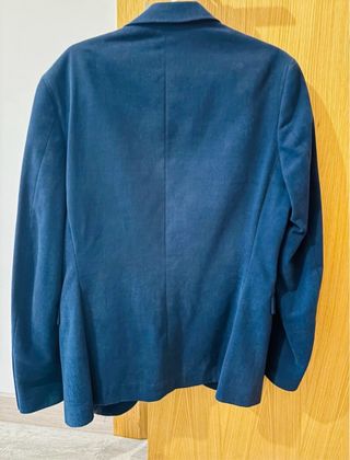 Chaqueta tipo americana de color azul de hombre muy elegante, está practicamente nueva. Talla S-M - Cierre de dos botones de color marron - Bolsillos frontales. - Puños con botones marrones
