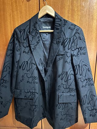 Americana de la marca Desigual con un diseño llamativo. - Estampado de letras y palabras. - Solapas clásicas.