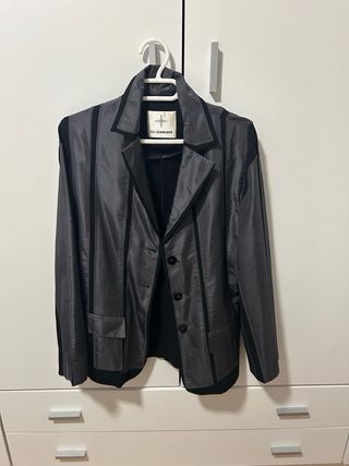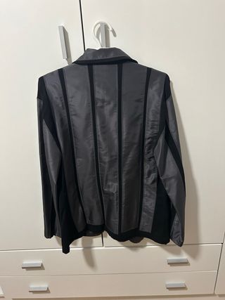 Americana elegante de color negro y gris, sin estrenar. - Diseño con paneles verticales. - Cuello clásico. - Manga larga.