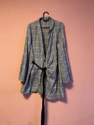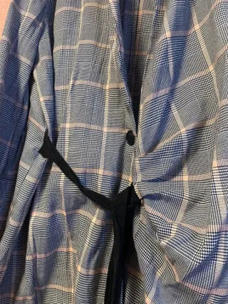 🧥 Americana / blazer larga de mujer de la marca AMITIE, ideal para looks arreglados o para dar un toque elegante a un outfit más casual. ✔️ Talla XL (ver etiqueta en fotos) ✔️ Tejido fluido y cómodo, no rígido ✔️ Estampado de cuadros en tonos azules, beige y negro ✔️ Cierre con botón y cinturón negro ajustable para marcar la cintura ✔️ Corte ligeramente evasé, muy favorecedor ✔️ Perfecta para entretiempo, oficina o eventos informales 📌 Estado: muy bueno, sin manchas ni defectos visibles 📸 Fotos reales de la prenda (delante, detrás y detalles)