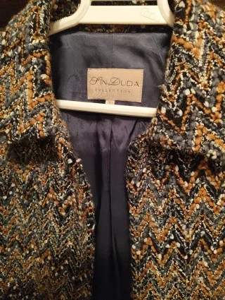 Elegante americana de Roberto Verino, perfecta para vestir. Diseño moderno y sofisticado. - Cierre con botones. - Cinturón a juego con detalle de madera. - Puños con botones. - Tejido texturizado. Gran calidad. Su precio fue de unos 200€