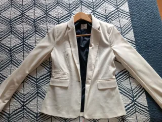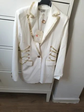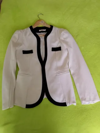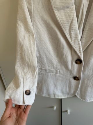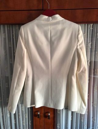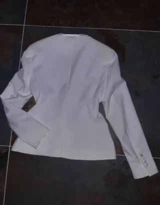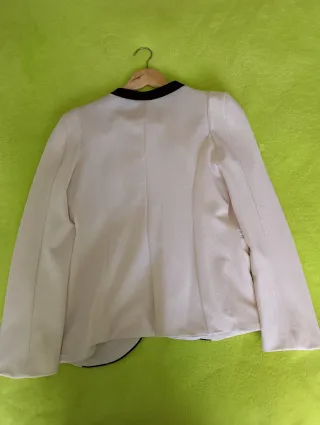 Americana blanca mujer, talla M. Los bolsillos son de mentira. Está nueva, nunca se ha usado.