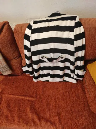 Americana o blazer con un diseño de rayas verticales en blanco y negro. Se encuentra en muy buen estado. - Diseño de rayas. - Corte clásico.