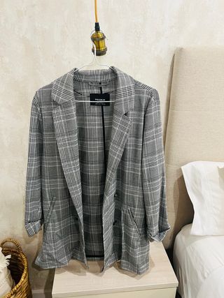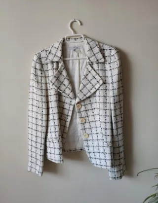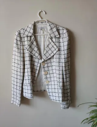 Americana de la marca Zara con un diseño de cuadros. - Patrón de cuadros en blanco y negro. - Corte clásico.