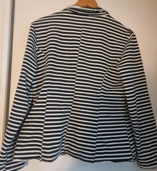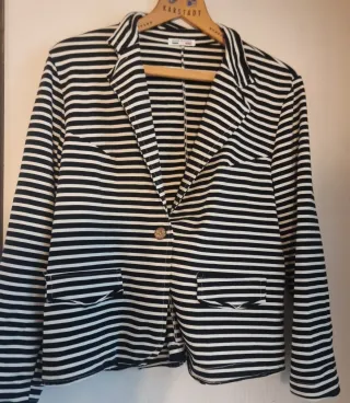 Americana de mujer con un diseño clásico de rayas.si estera un poco - Diseño de rayas horizontales. - Cuello solapa. - Cierre de un botón. - Dos bolsillos delanteros.