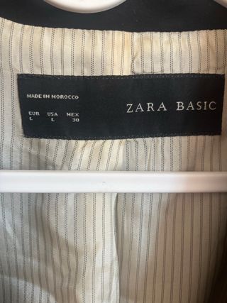 Americana de la marca Zara en color blanco. Un clásico que no puede faltar en tu armario.Pone xl pero da mas hasta xxl.Usado 2 horas. - Diseño de solapa. - Cierre de un botón. - Bolsillos de solapa.