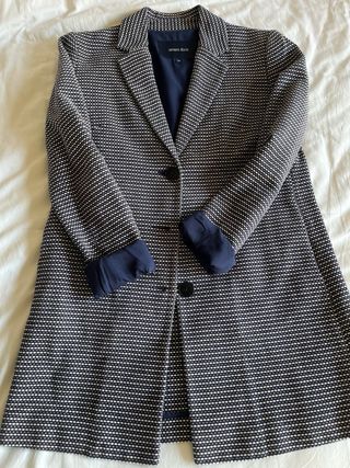 Americana de Armani Jeans con un diseño tejido en tonos azul y blanco. Presenta un corte clásico y elegante. - Cierre de botón. - Cuello solapa. - Forro interior azul marino. Como nueva