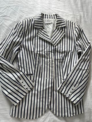 Americana de estilo marinero con un diseño de rayas clásico. - Diseño de rayas verticales en blanco y negro. - Cuello solapa. - Cierre de un botón.