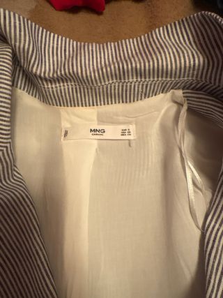 Americana de la marca Sfera con un diseño clásico y elegante. Perfecta para añadir un toque sofisticado a tu vestuario. - Forro interior a rayas azules y blancas.