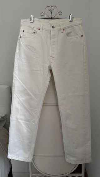 Vaqueros Levi's 501 Americanos Jeans Vaqueros Blancos Unisex de hombre o mujer Talla W 34 como una talla 42 española (ver medidas) de corte recto y botones frontales Usados, en buen estado NO ENVIO .. NO ACEPTO OFERTAS