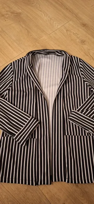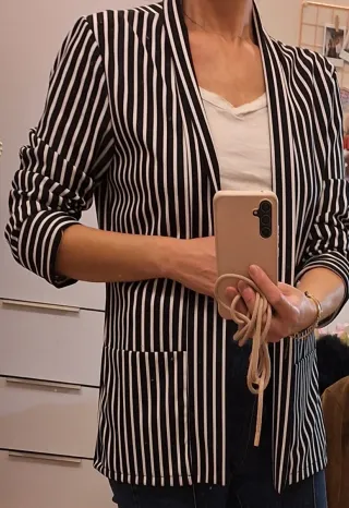 Americana de rayas de la marca Stradivarius. - Diseño de rayas blancas y negras. - Cierre de un botón. - Bolsillos delanteros.