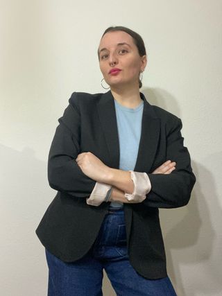 Americana/blazer clásica de Zara en color negro. - Diseño entallado. - Solapa de muesca. - Bolsillos frontales. - Forro interior a rayas. - Con hombrera 🚨 - Con algún descosido pequeño en la zona axilar - Algunas manchas de uso (sin nada de olor, es por el forro y el pequeño desteñido de algunas prendas). En la etiqueta pone XS, pero yo suelo gastar una S y me está bien.