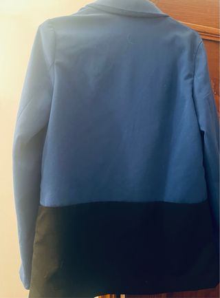 Americana de dos tonos, combinando azul y negro. Presenta un diseño moderno y elegante. - Cuello solapa. - Cierre de un botón. - Bolsillos frontales. - No tiene forro .
