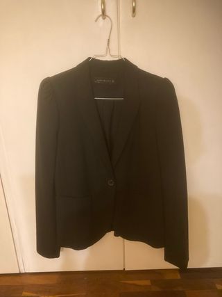 Americana de la marca Zara en color negro. Medidas 44 por 61 lleva coderas muy bonita - Diseño clásico y elegante. - Cierre de un botón. - Bolsillos frontales. - Forro interior.