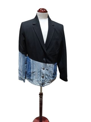 Americana de la marca Desigual con un diseño único que combina dos estilos. - Parte superior de americana negra. - Parte inferior de tejido vaquero azul. -ab302 /s/xxl