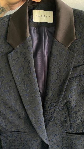 Americana de la marca Sandro con un diseño jacquard de corazones. - Color negro y azul. - Talla S.