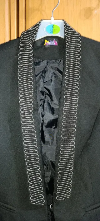 Americana negra mujer, talla M. Los bolsillos son de mentira. Está nueva, nunca se ha usado